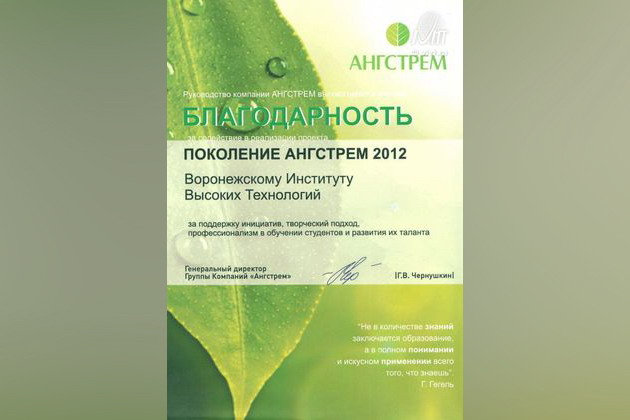 Студенты ВИВТ отмечены на конкурсе творческих и бизнес-проектов компании "Ангстрем"
