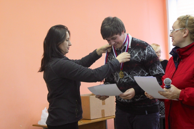 Преподаватели физкультуры Н. А. Кривотулова и М. В. Кракова награждали победителей первенства первокурсников по 7 видам, а также призеров и победителей круглогодичной спартакиады по баскетболу.