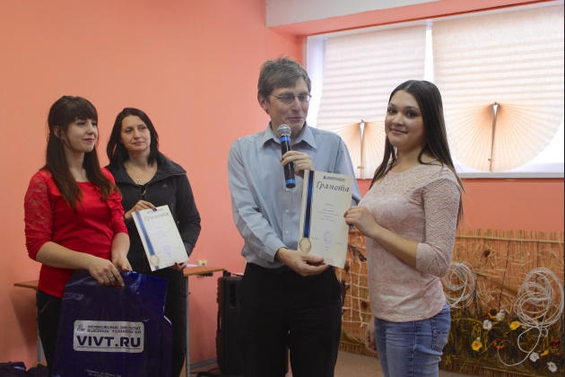 24 декабря в ВИВТ по итогам прошедшего семестра наградили лучших студентов за активное участие в жизни вуза. Отличились в этом семестре 80 ребят факультета дневного обучения. Эти студенты активно проявили себя на ниве общественной жизни института, наиболее ярко проявились в творчестве, принимали активное участие в научно-исследовательской работе, а также в культурно-массовых и спортивных мероприятиях.