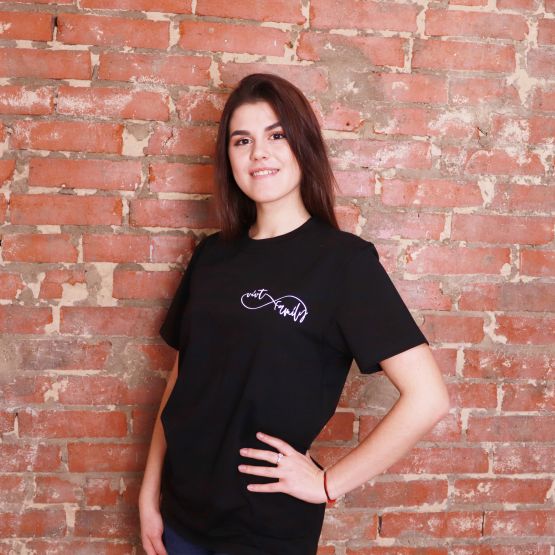 Рекомендуемый уход: перед стиркой выверните футболку на изнанку, стирать рекомендуется на деликатном режиме при 40 градусах.